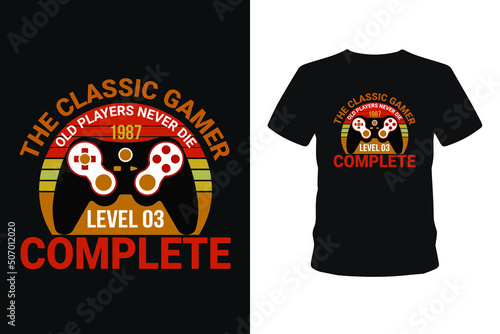 Old players never 1985 level 01 complete, Next level unlocked gaming t-shirt design, Vector graphic, typographic poster, vintage, bundle t-shirt, label, badge, logo, icon or t-shirt