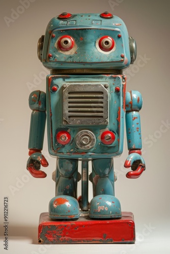 Old Robot with Red Eyes and Speaker