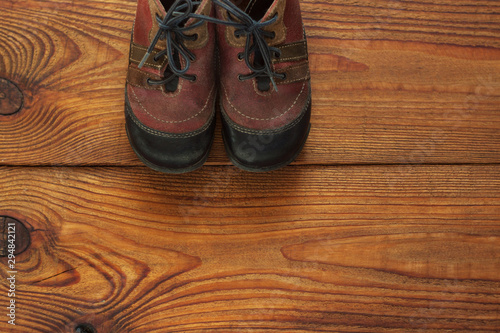 old shoes on wooden table