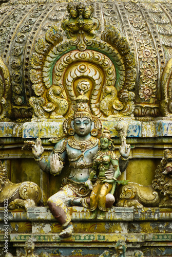 Old statues on the facade of Seetha Amman kovil hindu temple