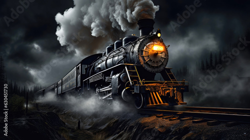 Old steam train. Generative AI