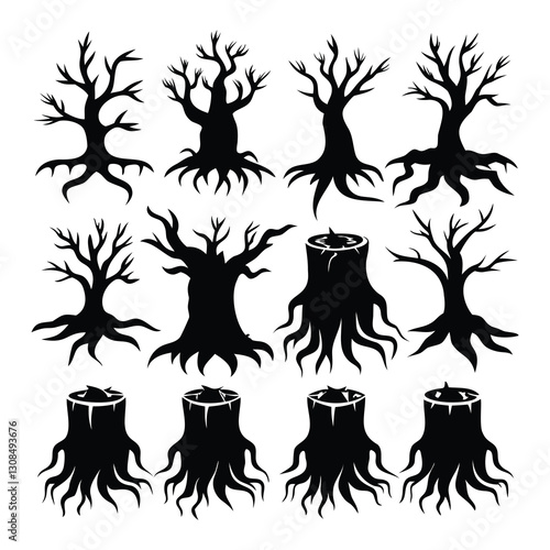 old tree stump with roots halloween icons symbol of silhouette vector illustration 201458896