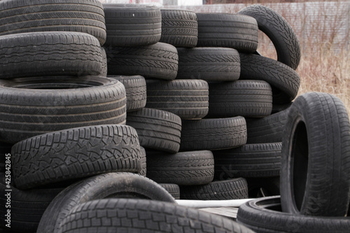 Old used car tires. Close up