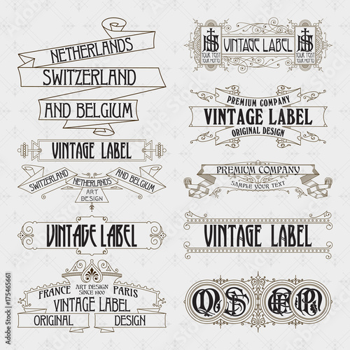 Old vintage floral elements - ribbons, monograms, stripes, lines, angles,border, frame,label, logo - vectors