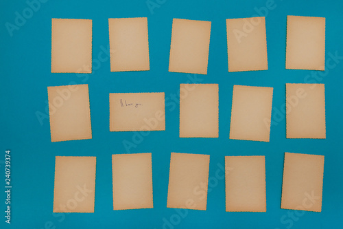 Old vintage paper blue set lot of card photo frame background edge corrugated letter missive reminder board announcement advert note