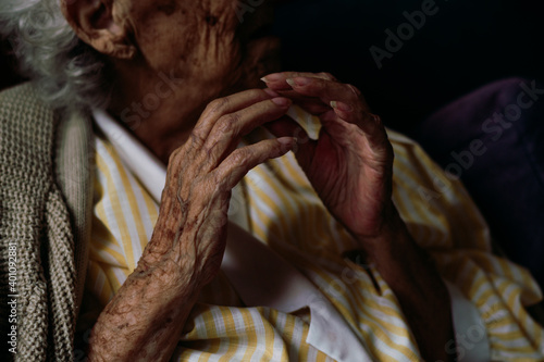 Old woman hands making different movements.