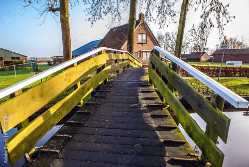 Old wooden bridge in Giethoorn, Netherlands.