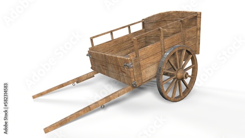 Old wooden cart isolated on white background 3d-rendering