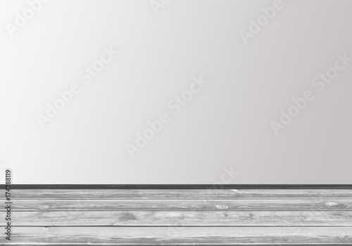 Old wooden grey floor and empty wall with copy space, empty room with light effect.