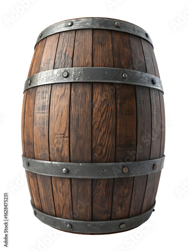 Old wooden oak barrel isolated on white or transparent png background