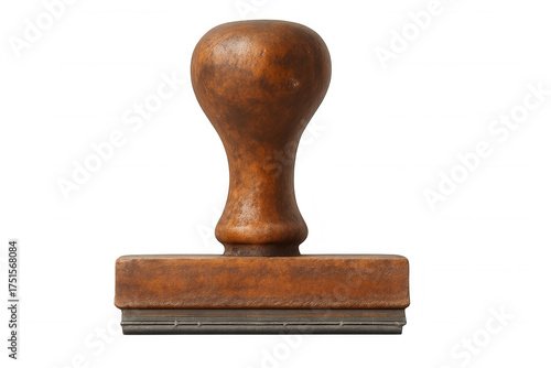 Old wooden rubber stamp representing official approval, document validation, and office work, on a transparent background