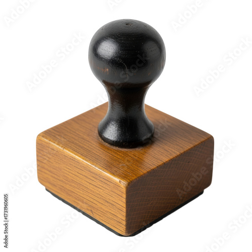 Old wooden rubber stamp with black handle studio shot object isolated on transparent background