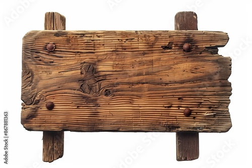 Old wooden signboard isolated on white background with copy space
