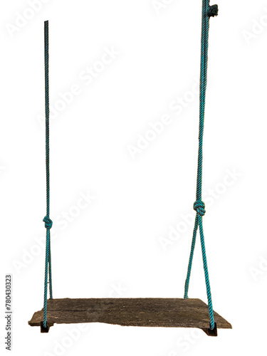 Old wooden swing. Isolated on white background
