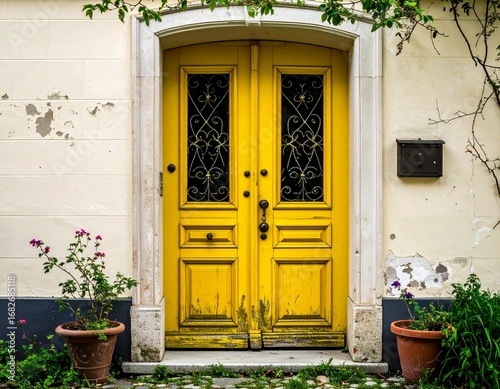 Old yellow door of a house