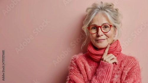 Older Woman in Pink Sweater Wearing Glasses