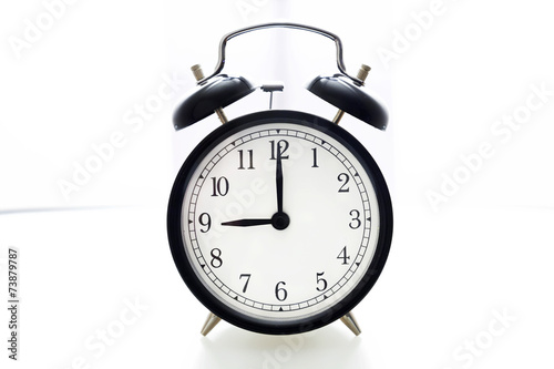 Oldfashioned black glossy alarm clock showing 8 o'clock