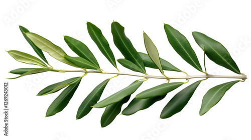 Olive Branch Sprig Green Leaves, Fresh Plant for Peace and Floral Themes, isolated on transparent background.