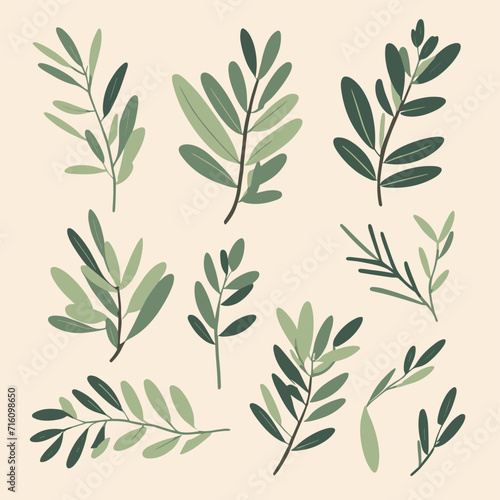 Olive branches illustration leaves set vector collection