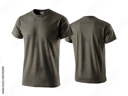 Olive drab t-shirt showcases front and back design product mockups or apparel designs