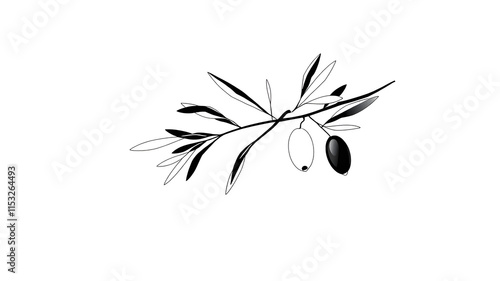 olive tree, minimalistic, black and white, stylish, elegant, upmarket, refined lines, flat design, luxurious, sophisticated graphic style. Generative AI