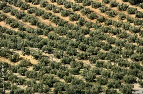 Olivos en el sur del valle de la comarca de Antequera, Málaga, Andalucía, España