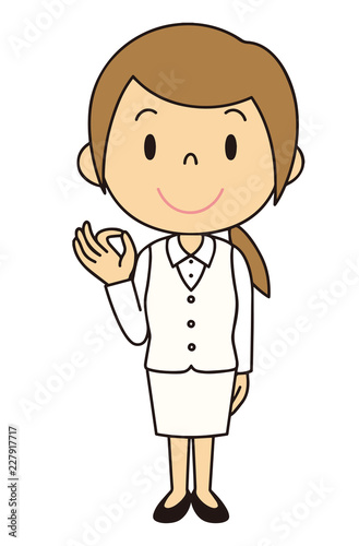 女性 OL 事務員 OKポーズ 立ち姿 白色の制服