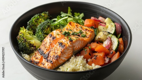 Omega-3 Rich Salmon and Cauliflower Rice Bowl for Healthy Lunch