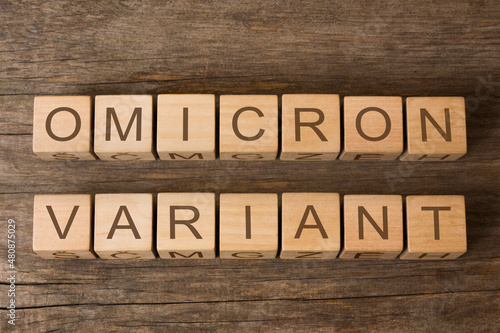 Omicron variant - text on wooden toy cubes. SARS-CoV-2 variant of concern