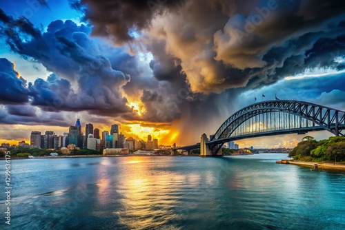 Ominous Storm Clouds Gathering Over Sydney Harbour Skyline