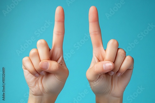 On a deep blue background, hands showing various signs with their fingers. Clear and expressive gestures emphasize the beauty of the movements and symbolism.