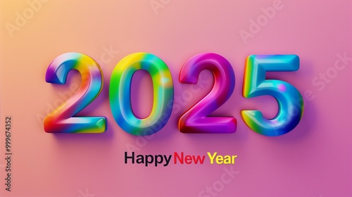 On a purple background there is a multi-colored inscription "Happy New Year 2025"