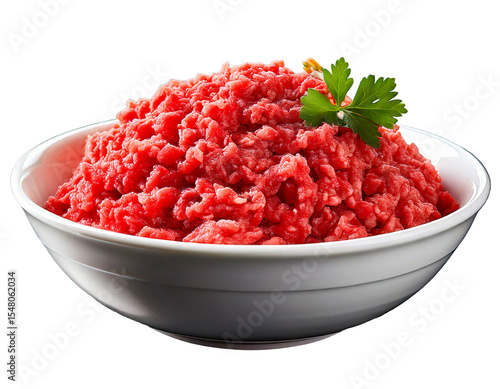 On a transparent background a white bowl of minced meat is isolated and the image was genera png