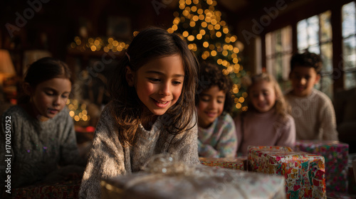 on bright christmas morning excited children dash joyfully towards beautifully decorated christmas tree