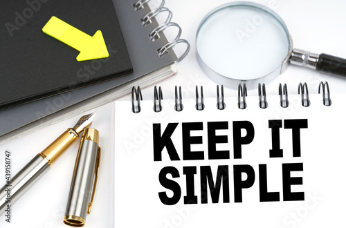 On the table are a pen and a notebook with the inscriptions - Keep it simple