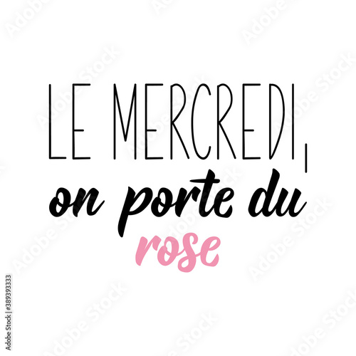 On Wednesdays, we wear pink - in French language. Lettering. Ink illustration. Modern brush calligraphy.