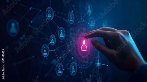 Onboarding concept. Person touch virtual onboarding icon for human resources business industry to introduce newly hired employee into an organization with behavior, welcome, knowledge, and skill