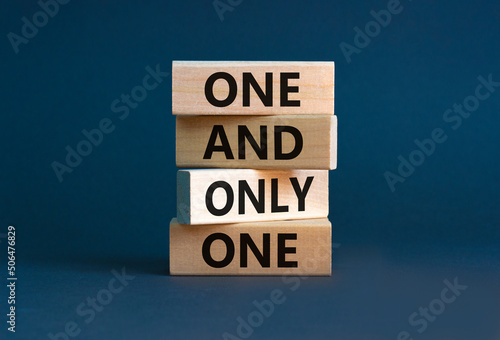 One and only one symbol. Concept words One and only one on wooden blocks on a beautiful grey table grey background. Business, motivational One and only one concept.