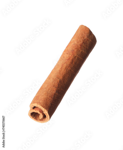 One aromatic cinnamon stick isolated on white