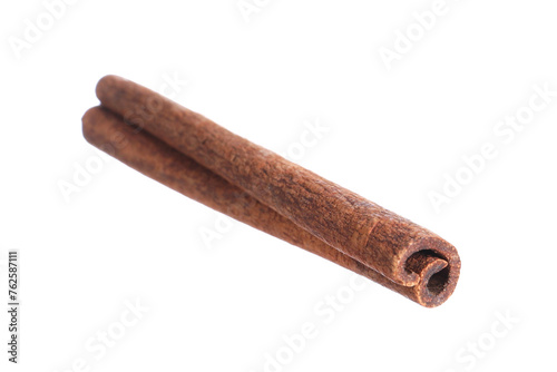 One aromatic cinnamon stick isolated on white