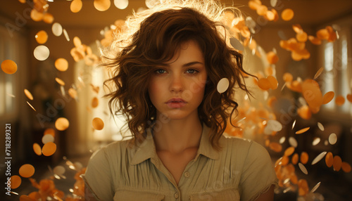 One beautiful woman, smiling, looking at camera, celebrating with elegance generated by AI