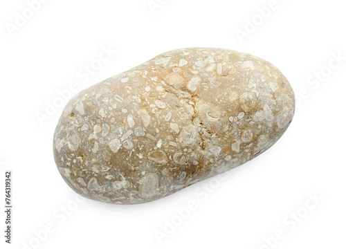 One beige stone isolated on white, top view