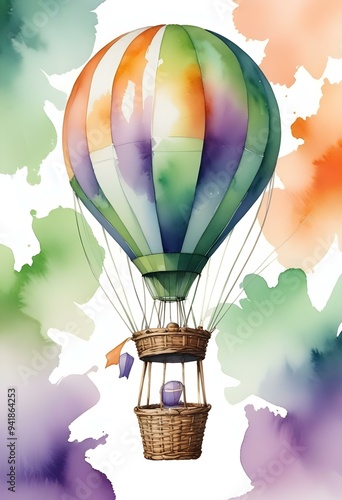 One Colorful hot air balloon on empty neutral monochrome background, png, detail, vector, cut, stories format, social media vertical format