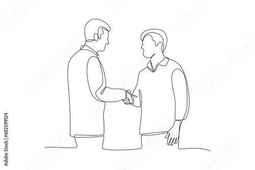 One continuous line drawing of Business people shaking hands. Agreement, trust, cooperation concept. Doodle vector illustration in simple linear style.
