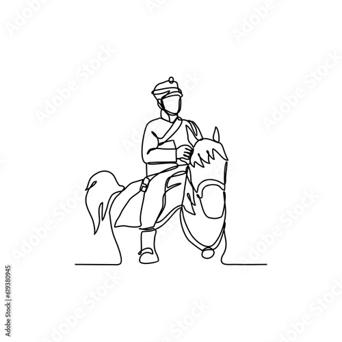 One continuous line drawing of illustration of a soldier riding a horse during war. soldier riding a horse concept in simple linear style continuous line. soldier concept vector illustration.