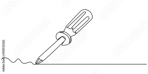 One continuous line drawing of screwdriver. Single line of screwdriver vector illustration, Single continuous line drawing of screw driver mechanics concept vector illustration, Construction minimal.