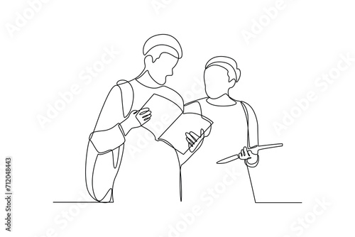 One continuous line drawing of Student life concept. Doodle vector illustration in simple linear style.