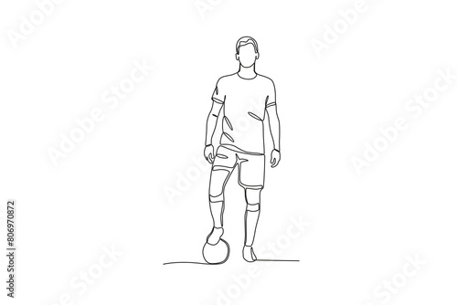 One continuous line drawing of young Football players are preparing to play. Football freestyle sport concept. Single line draw design vector illustration
