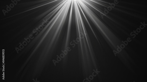One directional light rays at center on a flat black background, texture.