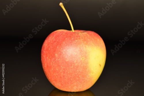 One fresh organic, juicy, sweet, fragrant apple on a black background.